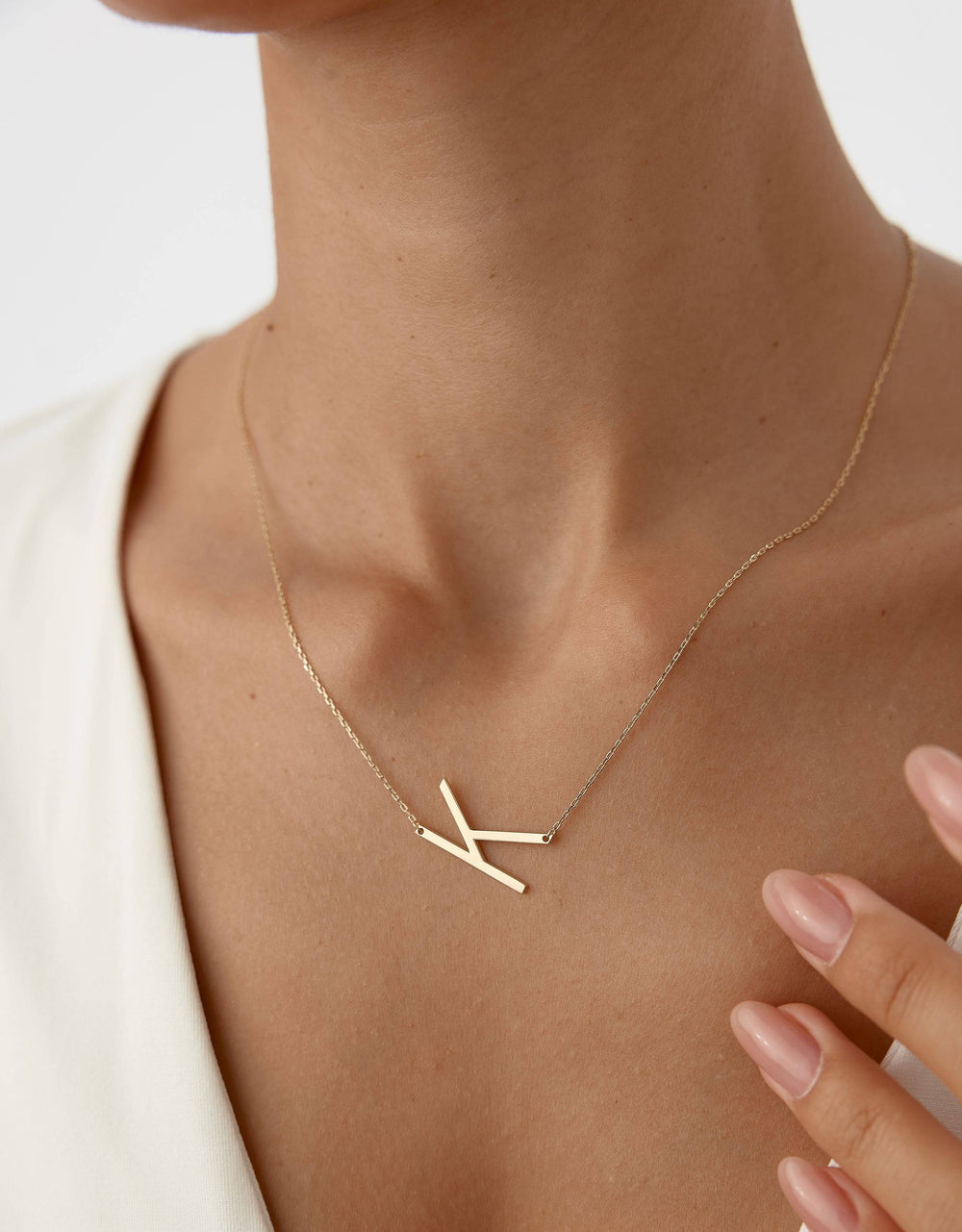 Personalized Maxi Letter Necklace • Customized Alphabet Necklace • 925K Sterling Silver Initial Necklace for Women