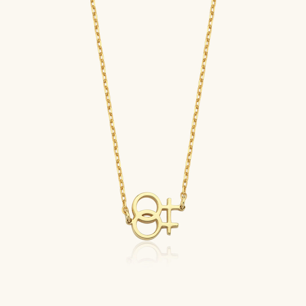 Celebrate love, unity, and equality with this elegant Double Venus Symbol Necklace. Crafted from 18K gold-plated sterling silver, this necklace features an intertwined double Venus symbol, representing femininity, sisterhood, and solidarity. The minimalist design is both meaningful and stylish, making it a perfect accessory for anyone who values these powerful ideals.