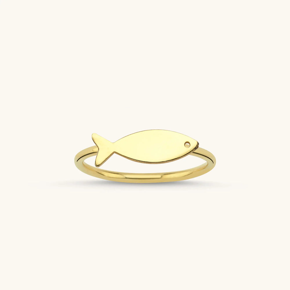 Add a touch of the ocean to your jewelry collection with this elegant Fish Ring. Crafted from high-quality 18K gold-plated sterling silver, this minimalist ring features a sleek fish design, embodying simplicity and style. Its delicate and adjustable band makes it perfect for stacking or wearing alone as a statement piece.