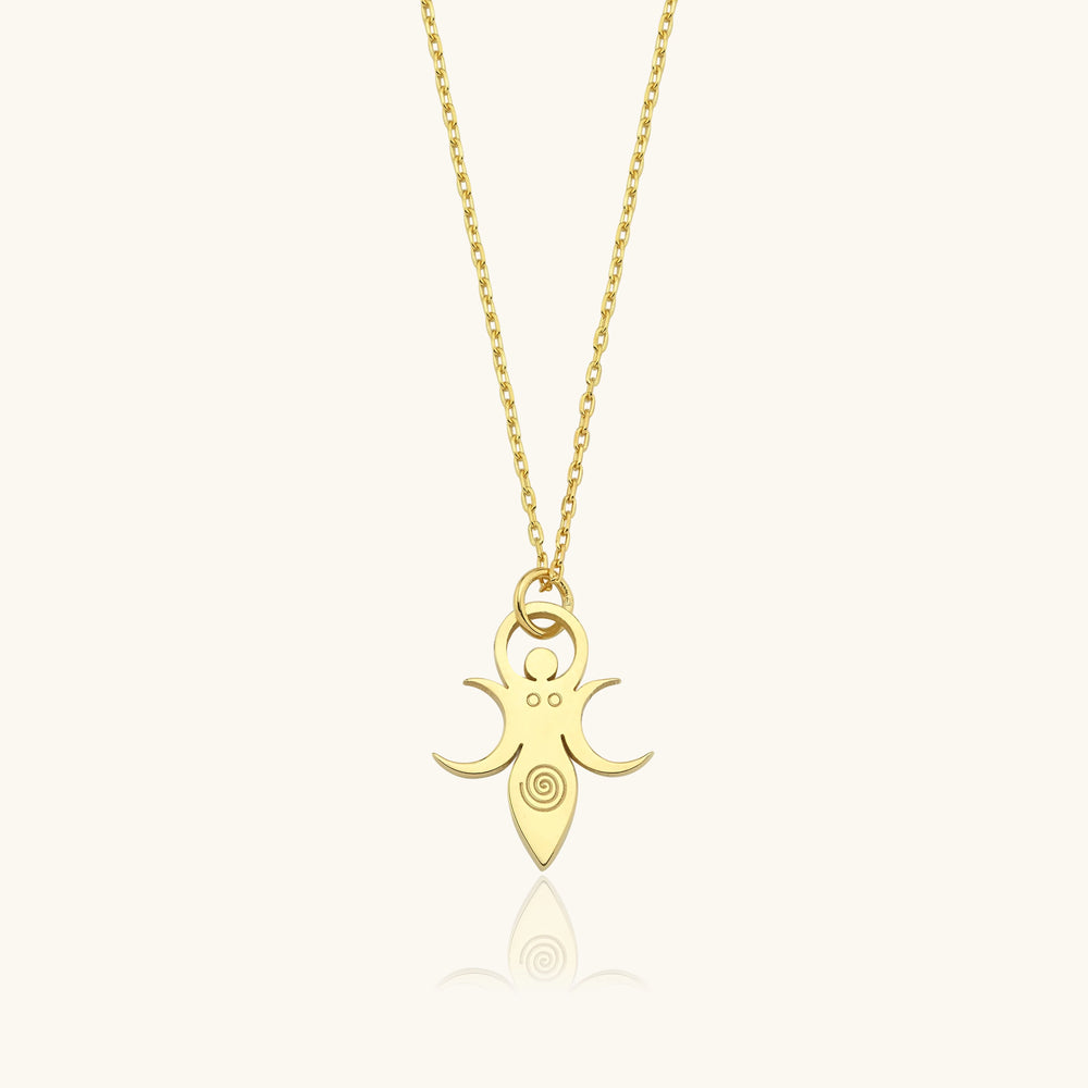 Celebrate feminine energy and ancient wisdom with this exquisite Goddess symbol necklace. Crafted from 18K gold-plated sterling silver, this pendant features a beautifully detailed representation of the Goddess, symbolizing empowerment, fertility, and the cyclical nature of life. The intricate design and polished finish make this necklace a powerful statement piece that carries deep meaning.