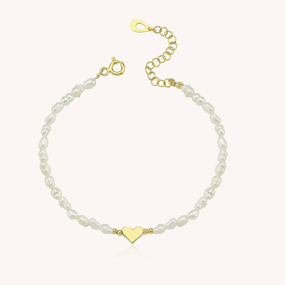 Gold Heart and Freshwater Pearl Bracelet – Elegant 925K Sterling Silver Jewelry