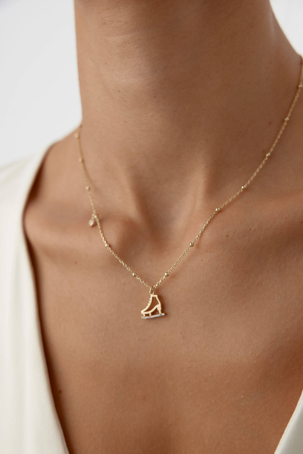 Ice Skate Charm Necklace – 18K Gold-Plated Sterling Silver with Sparkling Accents
