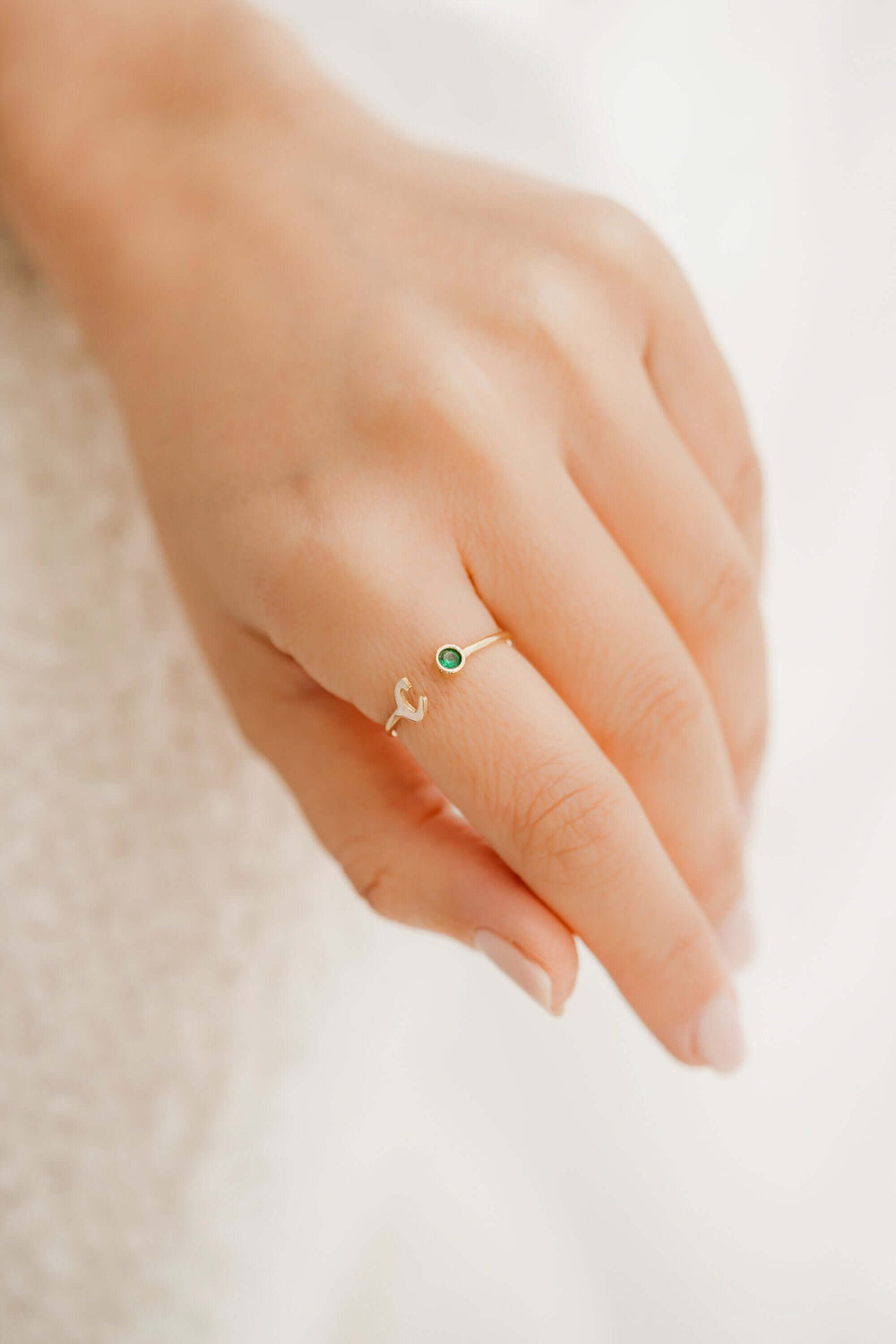 Add a touch of elegance and personalization to your jewelry collection with this Initial & Gemstone Open Ring.