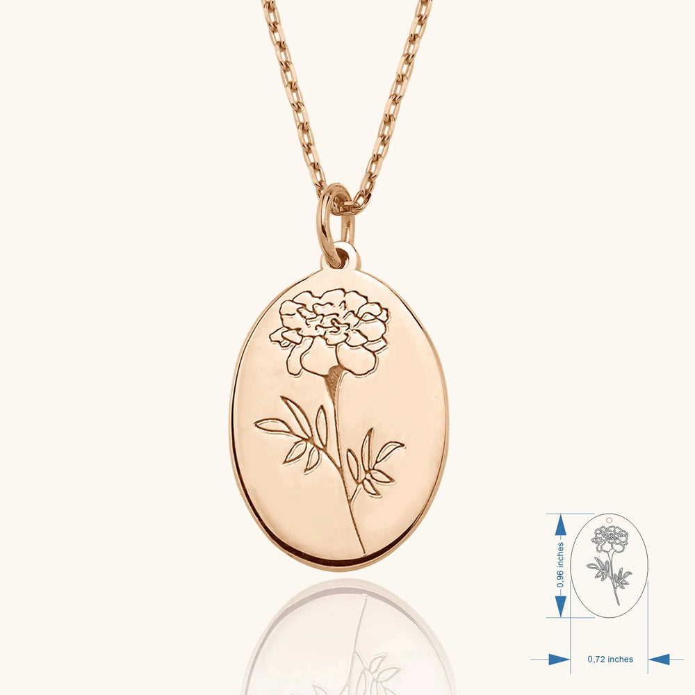 Maxi Birth Flower Necklace – Oval 18K Gold Birthflower Necklace Gift for Women