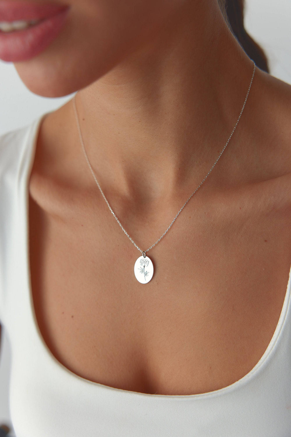 Elegant & Personal Design: The Midi Birth Flower Necklace is more than just a piece of jewelry; it's a symbol of individuality and natural beauty. Its smaller, refined oval shape makes it ideal for adding a subtle touch of elegance to any outfit, whether casual or formal.