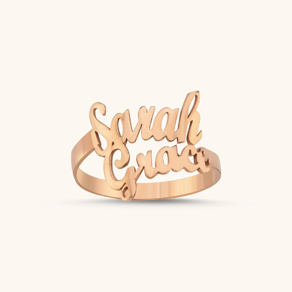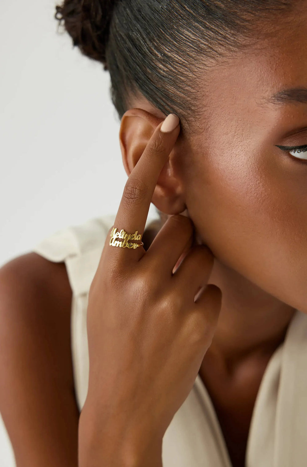 Personalized Double Name Ring - 18K Gold-Plated Sterling Silver
