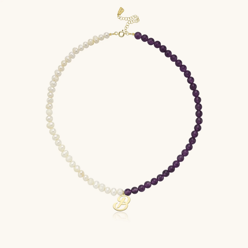 Personalized Gemstone and Pearl Beaded Necklace • 925K Sterling Silver Initial Letter Necklace for Women