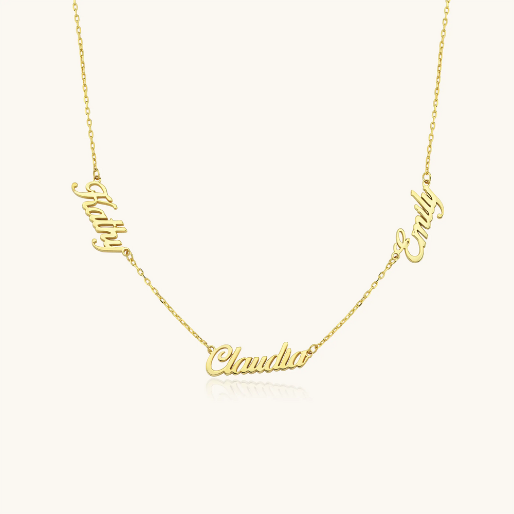 Celebrate your loved ones with this stunning Personalized Multiple Name Necklace. Crafted from high-quality 925K sterling silver and plated with 18K gold, this necklace can be customized with up to three names, making it a unique and meaningful accessory. Perfect for keeping your cherished ones close, this elegant piece is a versatile addition to your jewelry collection, whether worn alone or layered with other necklaces.