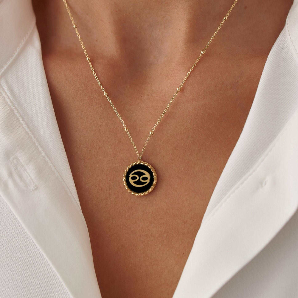 ONYX LETTER & ZODIAC PERSONALIZED NECKLACE